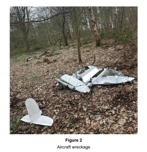 The aircraft was observed to follow the planned flight profile but as it approached approximately the halfway point the aircraft’s motors suddenly stopped. The aircraft initially maintained altitude but subsequently stalled, before descending quickly and striking the ground within a wooded area (Figure 2). No persons were injured and there was no damage to property; the aircraft was damaged beyond repair.