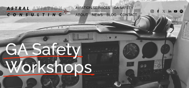 Have you checked out the Astral Aviation Consulting free General Aviation Safety Workshops yet? These online events are designed for GA pilots and consist of discussions with GA experts aimed at improving your flying knowledge and skills. The next event is Masterclass No3: ‘Global Navigation Satellite Systems’, which takes place on Wednesday 26th November at 7.30pm. This will be a 75-minute look into all things GNSS, how best to use it, pitfalls and what to do if you encounter jamming or loss of signal. Previous workshops on subjects ranging from partial power loss to human factors, winter weather to effective Check As plus the link for the next workshop can all be found at https://www.astralaviationconsulting.com/safety-workshops.
